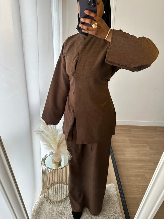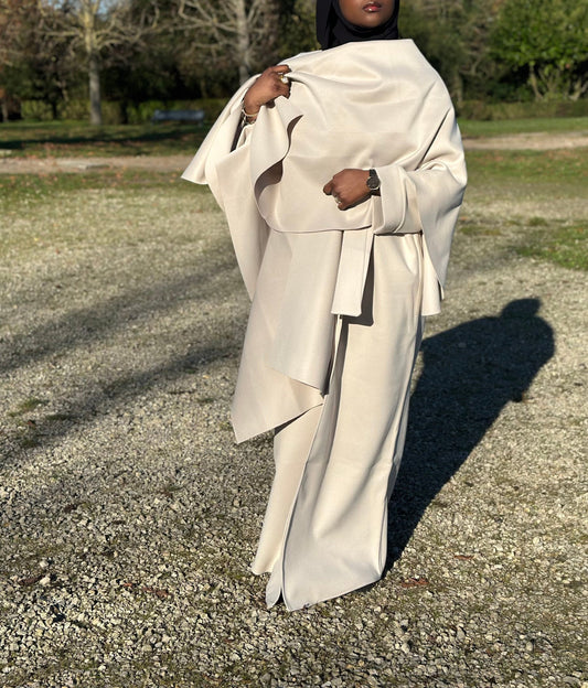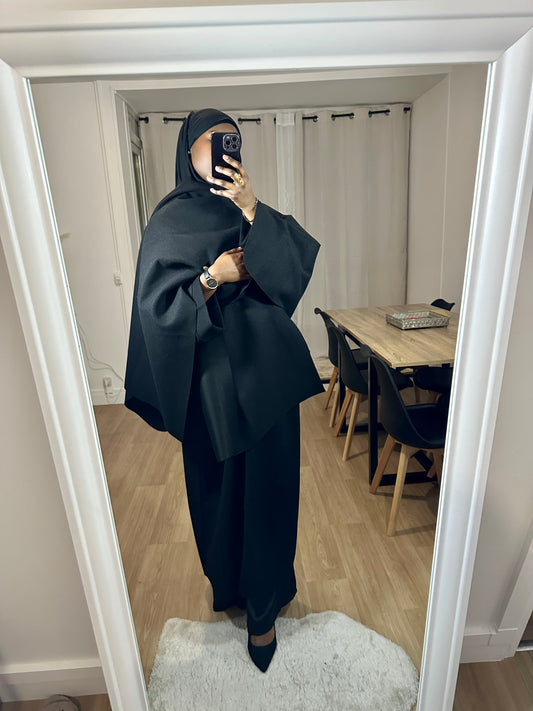 J'ai testé le kimono manche bouffante noir avec le voile marron clair. C'était magnifique.