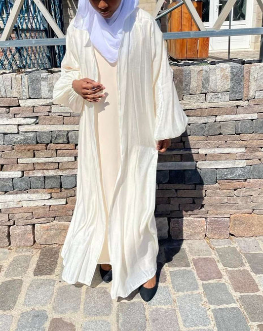 Abaya papillon satin crème