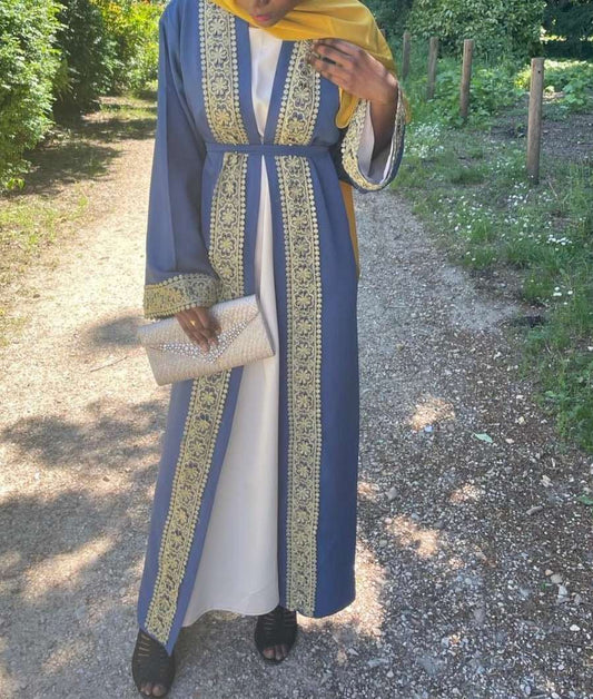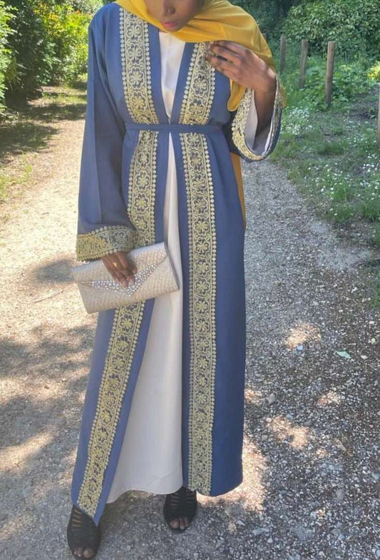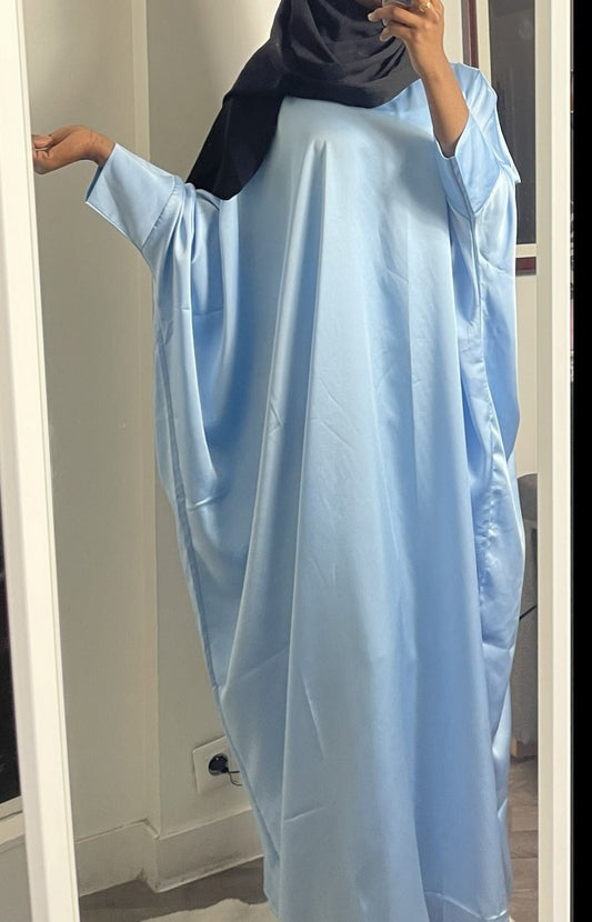 Abaya papillon satin bleu clair