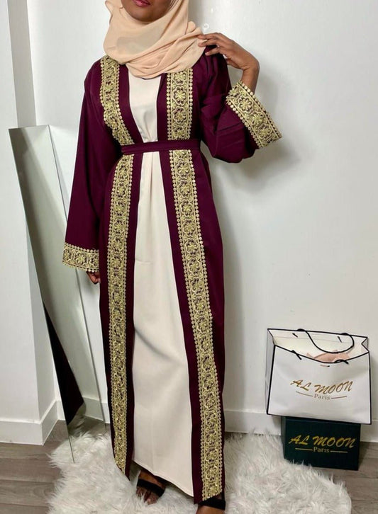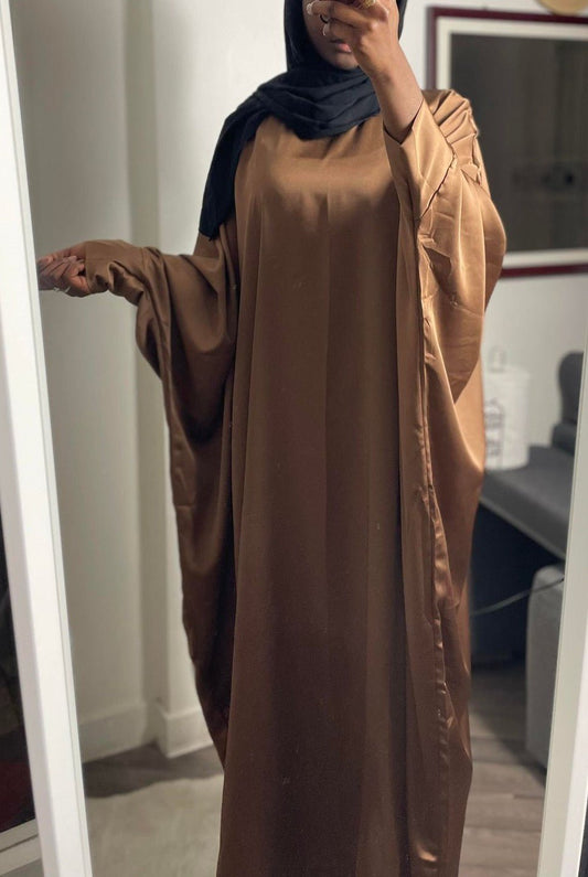 Abaya papillon satin marron