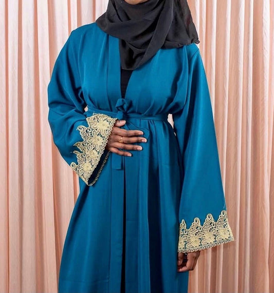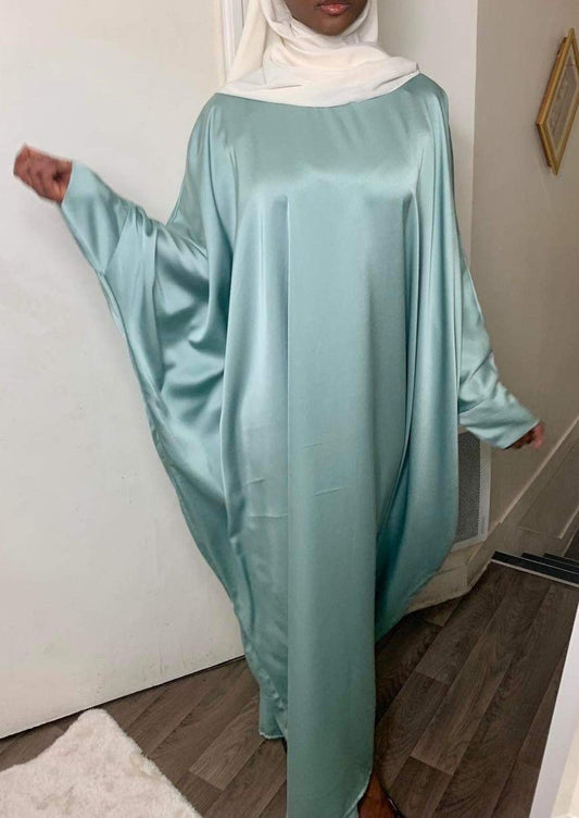 Abaya papillon satin turquoise