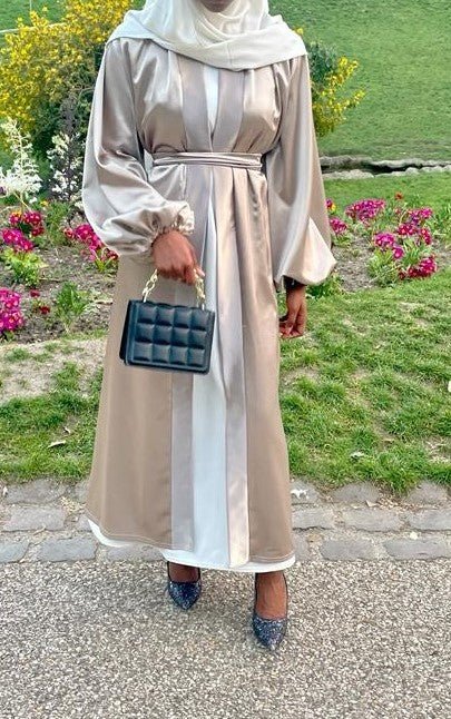 Abaya hijab intégré beige