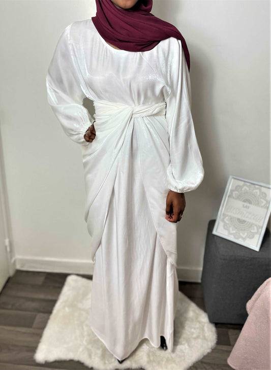 Abaya satin 2 pièces blanc