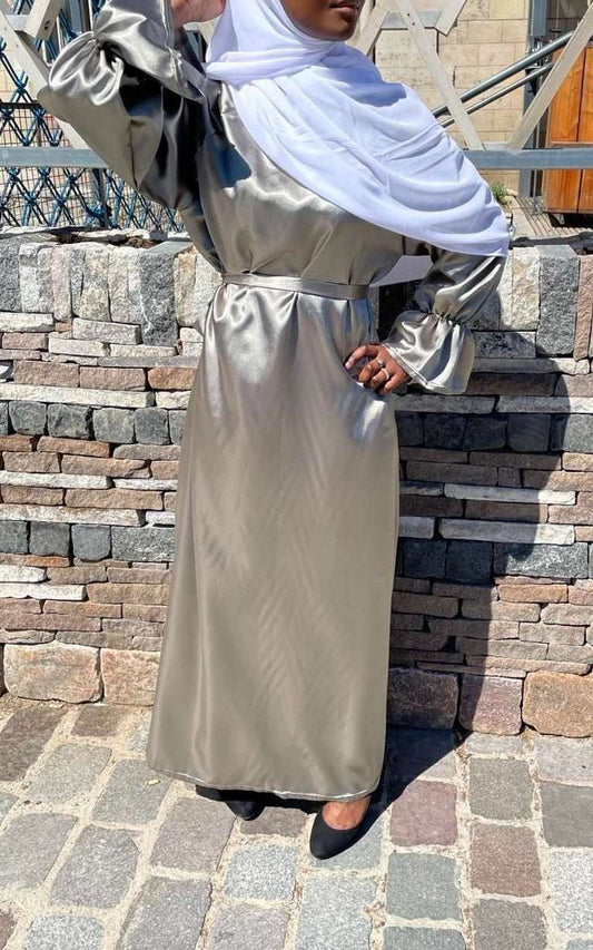 Abaya satin 2 pièces marron