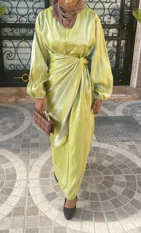 Abaya satin 2 pièces vert lime
